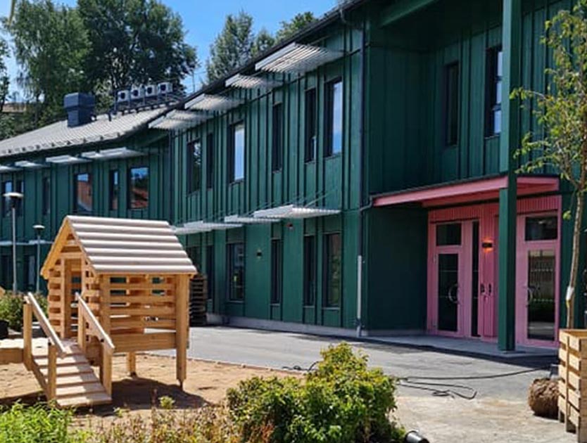 – Det är en stor fördel att alla förskolorna ser likadana ut. De utmaningar vi har hanterat under bygget av de första kan vi förebygga vid uppförandet av de slutgiltiga. Projektet har fortlöpt enligt plan och snart står alla förskolor på plats, säger Laura Stridh, platschef hos Vestia.