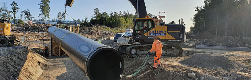 På Ahlsell arbetar vi aktivt för att leverera material till en ansvarsfull hantering av vatten och avlopp och har levererat allt VA-material till dagvattensystemet i Bäckaslöv. Det som gör just den här anläggningen exceptionell är att det gått åt en mycket stor mängd brunnar som ska ta tillvara på vattnet från de hårdgjorda ytorna. Det handlar om flera hundra perkolationsbrunnar, luftningsbrunnar och regleringsbrunnar.