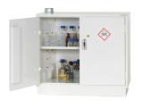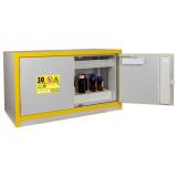 Laddskåp för förvaring och laddning av Litiumbatterier med fyra hyllplan och ett integrerat golvuppsamlingskärl för uppsamling av eventuellt läckage. Varje hyllplan är utrustat med eluttagslist med metallhölje och upp till 10 jordade eluttag. Eluttagslisten är driftklar och sitter på skåpets bakre vägg. Skåpet är typgodkänt brandklassning på 90 minuter för utvändig brand enligt SS-EN 14470-1 och brandsklassning på 90 minuter för invändig brand enligt SS-EN 1363-1. Integrerad, underkörningsbar sockel som underlättar förflyttning. Låsning av dörrarna med sker automatiskt med 2-punktslåssystem. Inklusive brandlarm och potentialfri larmkontakt till fastighetsstyrning. 400 V-kabel ingår i leveransen. Vid uppställning rekommenders att skåpen placeras på plant underlag, från vilket det i händelse av olycka snabbt kan evakueras.