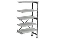 Utdragbar låda med expansioner som med fördel monteras under fast hyllplan. Djup 110 mm, max 50 kg fördelad vikt.