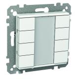 Bakgrundsbelyst kapacitiv touchpanel med rund display i Flat 55-familjen (standardramar 55 x 55 mm), med närhetssensor, platt design, med total anpassning. Infälld montering med Zennio ZS55 ramar, Passar 55 mm system/serier: - ELKO, Schneider, SG, Berker, Jung, Merten, GIRA, mm.. Vem som helst kan skapa unika kompositioner, inklusive bilder, ikoner, texter eller logotyper, som är tryckta på ett höghållfast härdat glas. Rumskontrollen är enkel med de 4 tillgängliga knapparna och upp till 4 indikatorer kan visas på dess centrala display. De bakgrundsbelysta ikonerna för knappar reglerar deras ljusstyrka med den medföljande ljusstyrkasensorn och dämpas när användaren inte upptäcks av närhetssensorn. Flat 55 Display v2 inkluderar en termostat, samt 2 analog-digitala ingångar som kan konfigureras för potentialfria sensorer och tryckknappar, temperatursonder eller rörelsesensorer. Installation i standard monteringsbox med 55 x 55 ramar av 1/2/3/4 moduler (vit, blank vit, antracit eller silver). Tillbehör: temperatursond (ingår) och rörelsesensor. Ram ingår ej. Onlineapplikation för att designa din egen kapacitiva switch.
