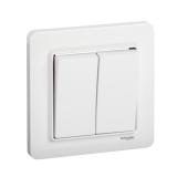 1815669 Strömställare SAGA med dubbeltrappfunktion, med snabbanslutning. Terminalerna är för max två stela ledningar. Komplett, inklusive täckram, brytarinsats och vippa. Biocirkulär plast används i ramen.