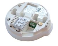 Brandvarnare för anlutning till 230V nätet. Med utbytbara backup-batteriet, 3x1.5V AAA, säkerställs drift vid strömavbrott. Sammankoppling av 16st detektorer med kabel som standard och ansluts med fas-, noll- och signalledare, max 2,5mm2 och 250m. Med radiomodul som tillbehör kan sammankoppling göras trådlöst. Man kan dessutom kombinera trådbundet och trådlöst i samma system. Kan också kombineras med värmedetektor E6303347. Enkel att installera över ett utkast, på takdosa eller med utanpåliggande kablage. Med FastFix-systemet klickas den enkelt fast på installerad sockel. Som ytterligare tillbehör finns reläsockel, E6303349, för styrning av extern utrustning som t.ex. dörrstängare och blixtljus och trådlös kontrollpanel E6303351, som underlättar test vid högt i tak. Godkänd enligt EN14604:2005/AC:2008 med ljudtryck på 85dBm på 3 meter. Levereras med monteringssockel, skruv och plugg, inbyggt laddbart batteri och svensk bruksanvisning.