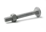 skruv och mutter tillsammans. Helgängad skruv enligt ISO 4017 och delgängad