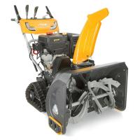 Drivning: Band ger överlägset grepp i de flesta snöförhållanden och gör den här snöslungan till ett perfekt val för snöröjning på ojämna underlag, grusgångar, etc. Den varken glider eller slirar, inte ens i branta slänter, så att du alltid har fullständig kontroll. Hydrostatisk drivning gör att snöslungans körhastighet kan justeras steglöst, utan att matarskruvens rotationshastighet påverkas – vilket är perfekt när snön är blöt eller hårt packad.