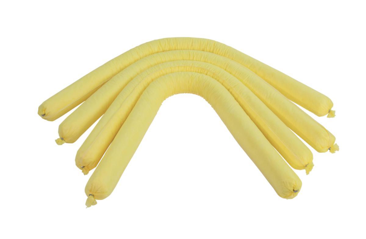 Absorbent snakes for effective liquid absorption – Absorb all types of liquids, including acids, bases, and solvents. The yellow color acts as a warning for chemical spills. Ideal for containing spills and managing drips from machinery.