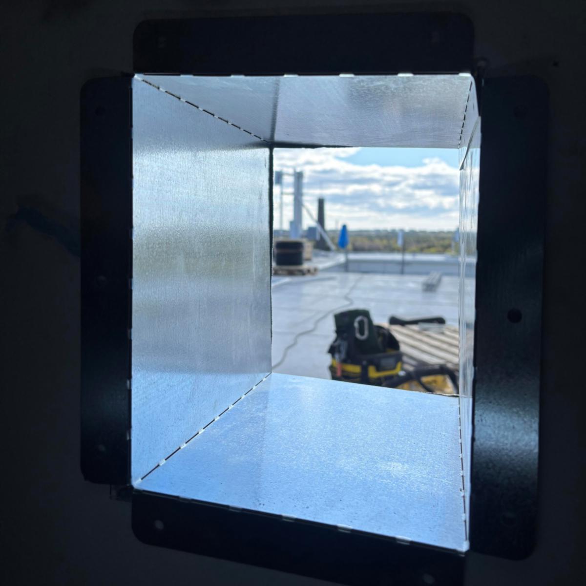 The penetration sleeve is a solution between the inner wall and the outer wall. The purpose of the sleeve is to create a smooth channel between the inner and outer wall. The sleeve is delivered as a flat sheet to easily adjust the depth on site.