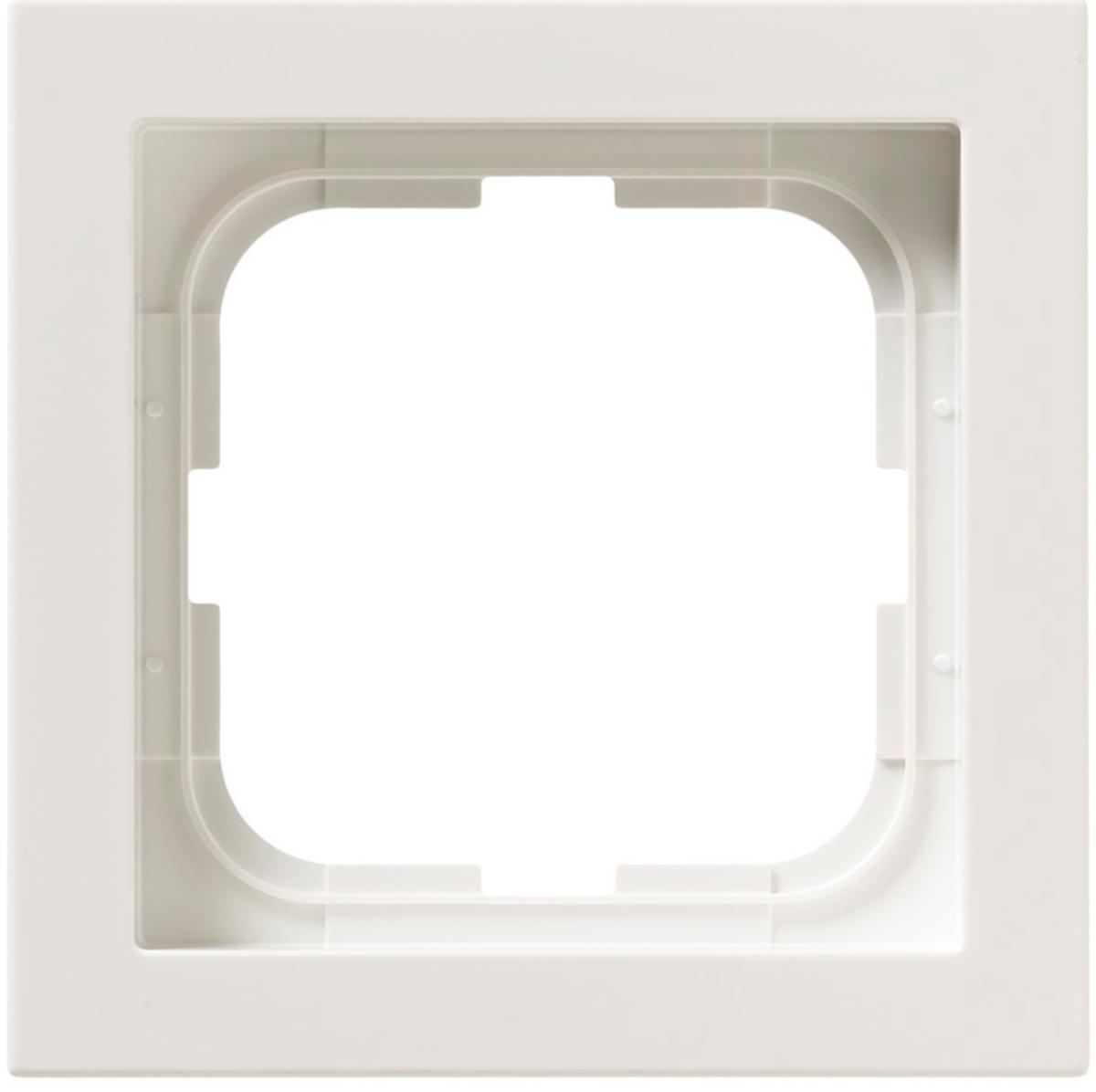 Cover frame for recessed mounting of 1-way devices with center plate such as switches. Can be installed both vertically and horizontally.