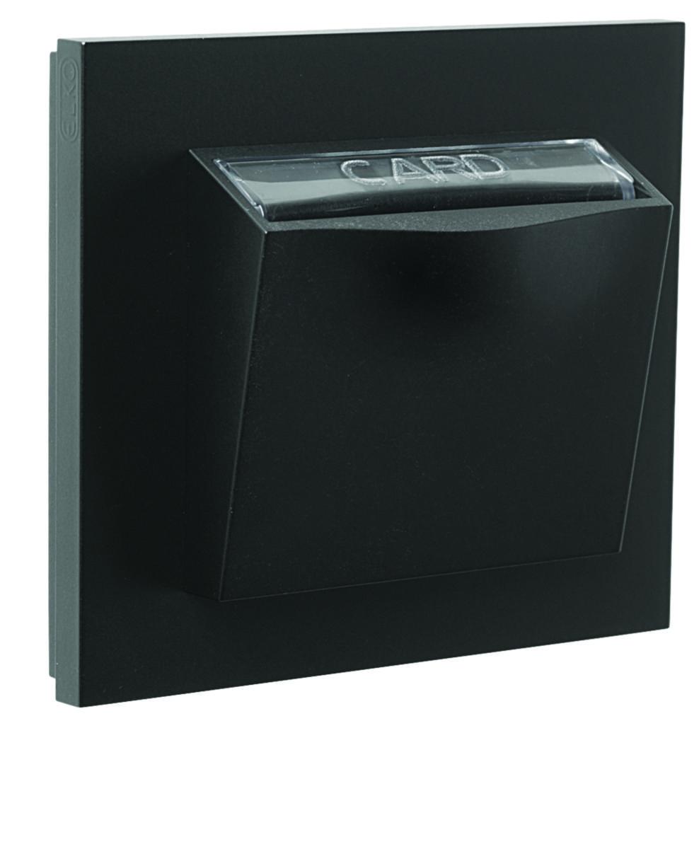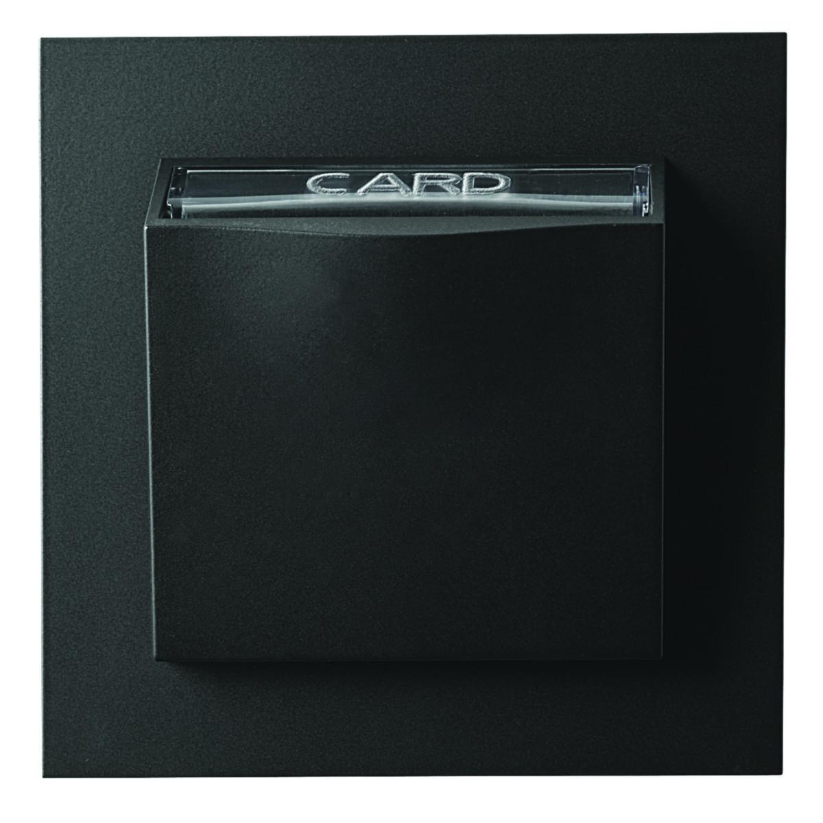 Key card switch for recessed mounting. Frame and centre plate of halogen free thermoplastic. Screw connection for connectors. Designed for combined installation or an outside surface mounting with an extension frame 20 mm. 1 and 2-pin connector is possible. Alternating contact for indication. Key card with max. width 54 mm can be used. Assembly depth 11.5 mm.