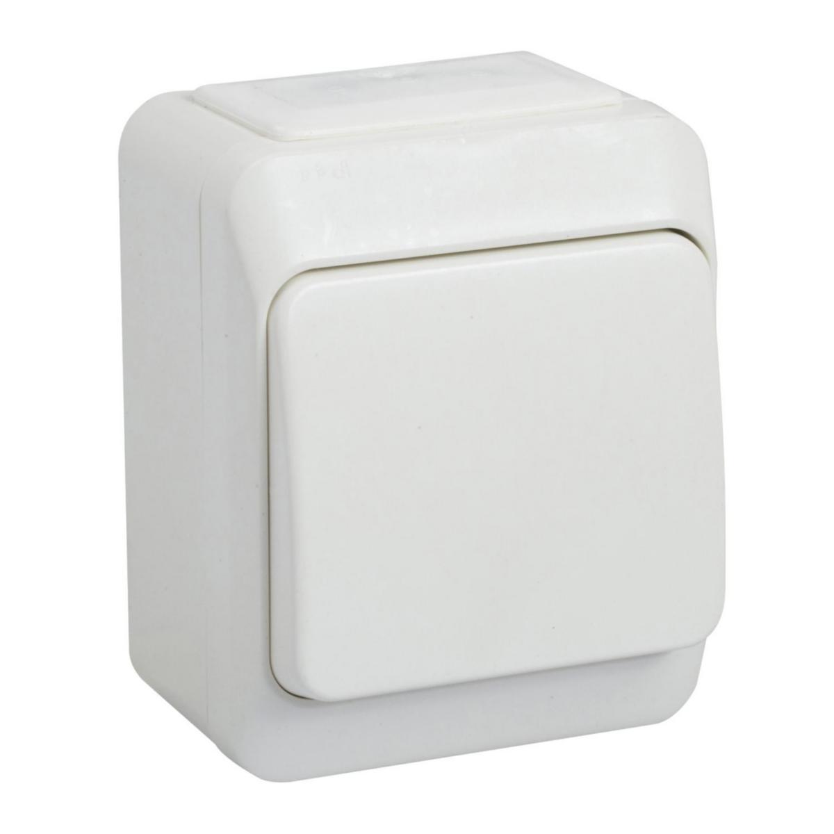Electric switch for surface IP44 mounting with two membrane nipples. Screw connection. Two neutral switching terminals in crown and step.