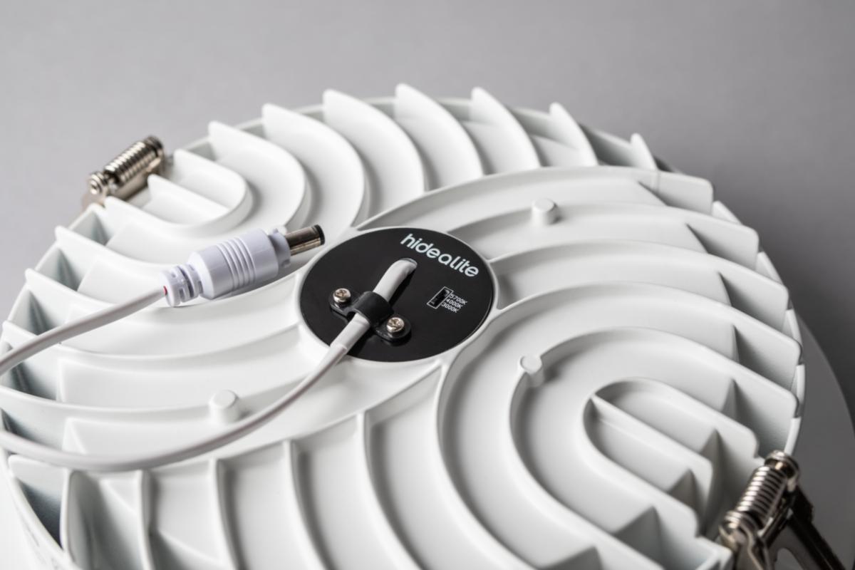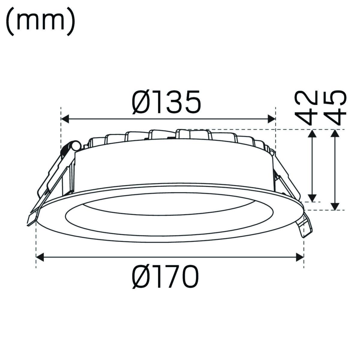 Low-build, energy-efficient downlight for general lighting in larger premises - perfect replacement for older luminaires with compact fluorescent lamps. Selectable color temperature via DIP switch. Available in three sizes, most hole sizes fit from 140 to 218mm. With high efficiency and wide spreading angle together with an opal aperture protection, a uniform general light is created in, for example, corridors, schools, dining rooms and waiting rooms. Comes complete with phase dimmable drive, 2m cord rack with ungrounded plug.