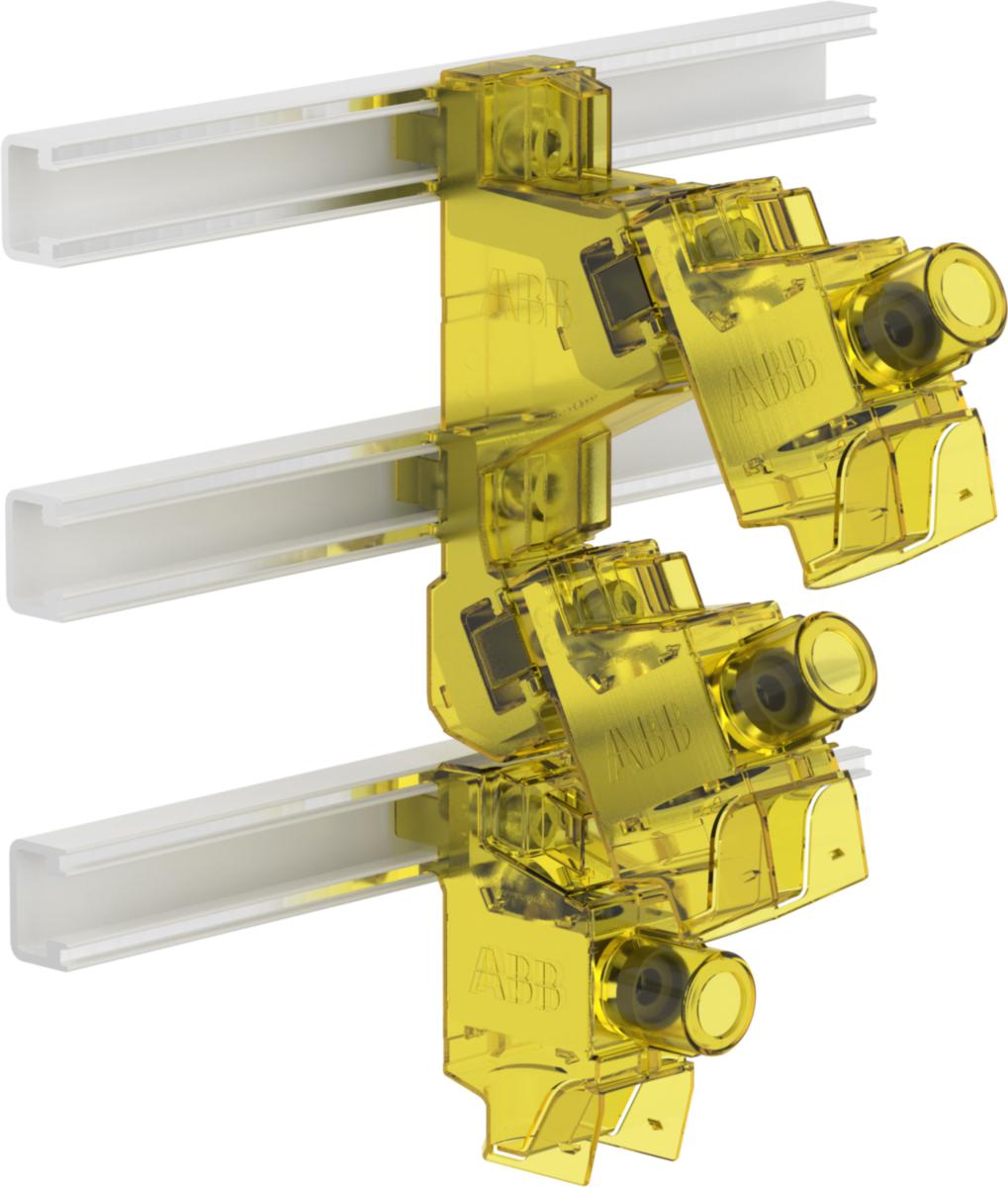 Insulated connector for compact mounting of ADI 300 for 3-phase. Width 3 modules. Enclosure class IP2X. Mounted on Kabeldon IP system. ADI 300 (0732794) not included.