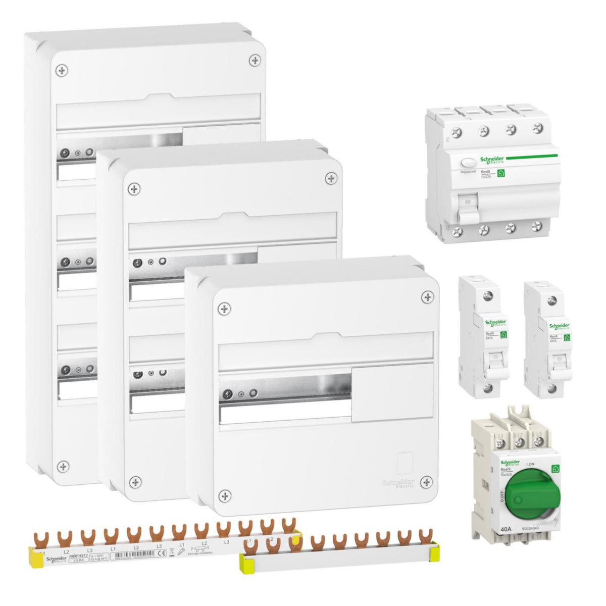 The package contains a complete selection of Schneider Electric's Resi9 products - a modern and safe series designed to provide maximum operational reliability, easy installation and a stylish result in every electrical panel. Here you get everything you need to build a safe, flexible and future-proof solution.