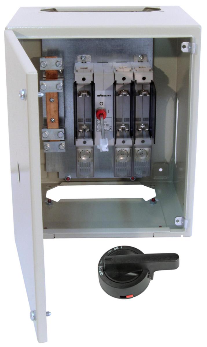 Circuit breaker with fuse equipped with clamps for Al / Cu conductors on the incoming side. Outgoing connection normally for Cu but can be connected with Al conductor using KKL1X120T2 (accessory). The switches are lockable. They are delivered with PE-N terminal for 4/5 conductor systems. Zero terminal for Al / Cu. Divisible flange opening at the bottom. Auxiliary contact is available as an accessory. Developed in Eldon Installation's central system HPK.