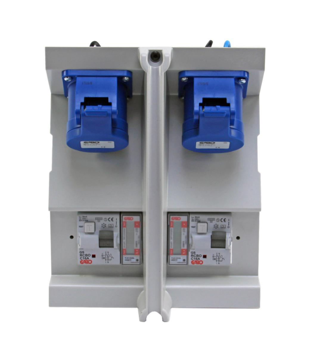 ACMN operation You always have access to electricity 24 hours / day. The insert has digital energy meters that make it possible to read the exact consumption. The insert is equipped with 2 personal protection switches and 2 IEC sockets and with measurement on the sockets. The components are mounted on a DIN rail, which makes any replacements very easy. The insert is not compatible with previous P100 enclosures.