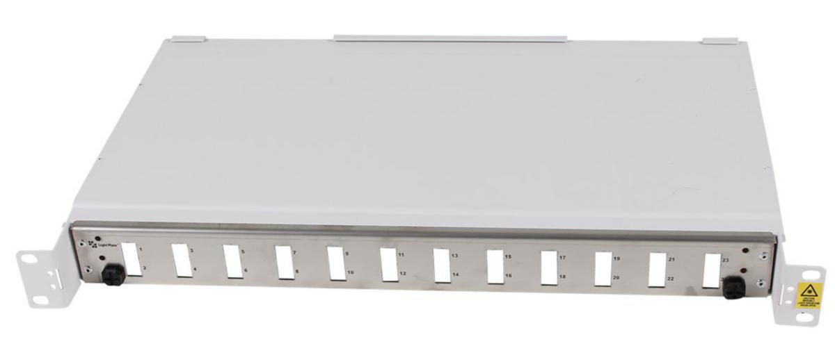 Extendable ODF for 19 "mechanics with recessed front. 12xSC duplex. Complete with splice holder and fiber guide