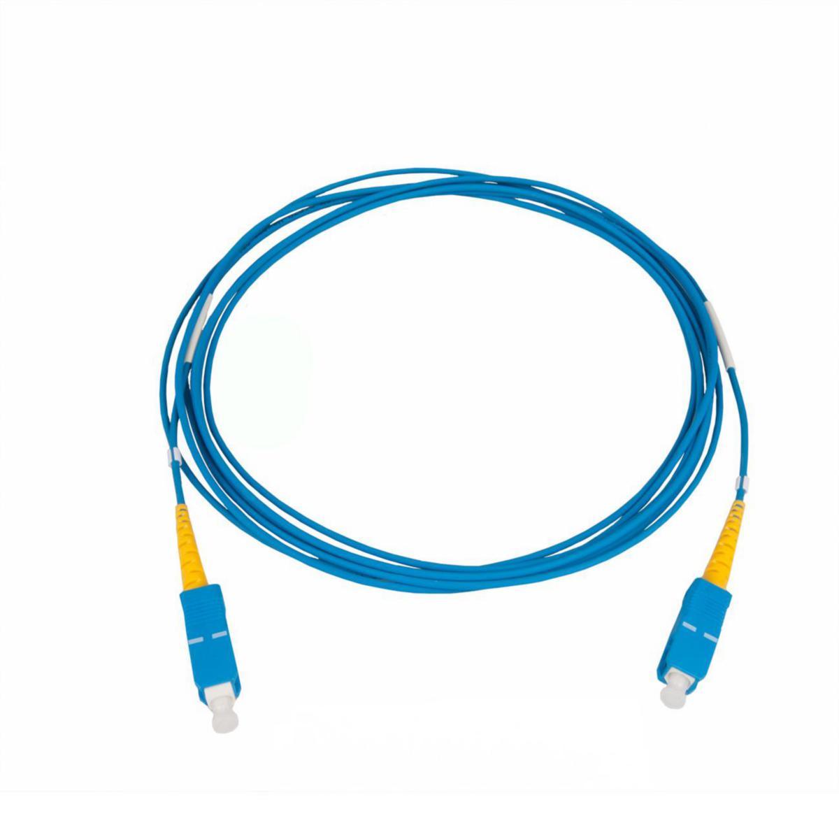 Pre-contacted fibre optic cables in a variety of lengths, intended for cross-coupling or termination of active equipment. The fibre optic cable has two precontacted ends with SC connectors with UPC performance. The cable contains fixed secondary protected fibre and is sheathed with a blue flame retardant-halogen-free sheath