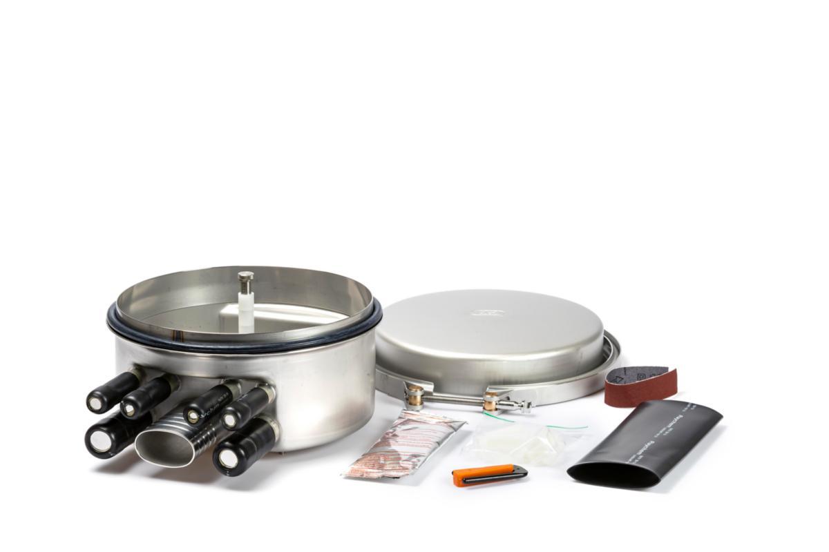 Telecoms box 240 is a modular system of lockable enclosures made of acid-resistant stainless steel. Features high flexibility and simple handling. O-ring and V-clamp are used for sealing to guarantee tightness corresponding to IP-68. The enclosures are suitable for demanding environments, and with desiccant, the box remains moisture free even under extreme conditions. The circular shape unifies the demand for flexible and compact container with the desire to store the fibres in soft circular loops with large bending radius. Telecombox 240 is tested by Telias and complies with its joint box requirements (SOK 19850322).