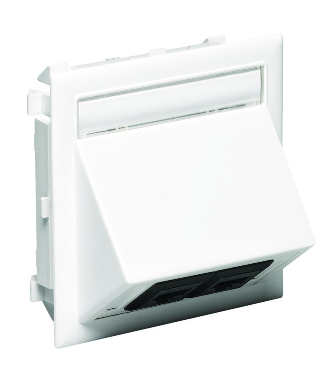 Connecting Kit for mounting in Thorsman installation channels, i.e., ducts, poles and boxes. The kit contains angled cover with holder for snapping into the front opening, contact washer, frame and connectors LexCom Cat6. UTP=unshielded, STP=shielded. 568 A-/B connection. The kit can also be installed surface-mounted on the wall or junction box c/c 60 with the mounting frame