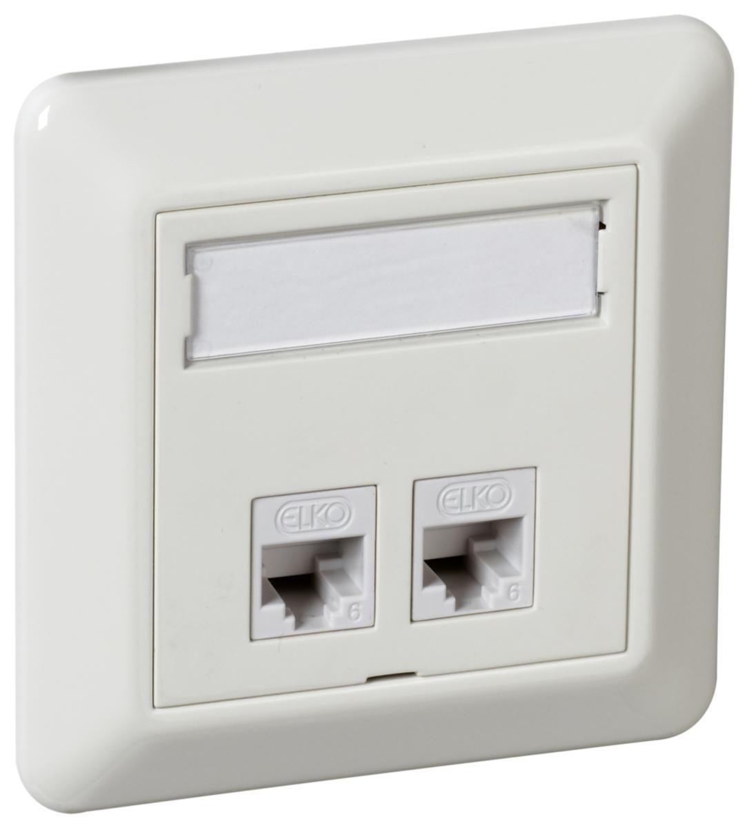 Modular Output TL UTP C6 in complete output kits consisting of unshielded modular jacket TCS ToolLess, straight centre plate and frame. Simple, tool-less contacting. Can be contacted in accordance with 568A or 568B. Jacket snaps directly in the centre plate. The modular outlet has been designed and developed in accordance with SS-EN 50173 series, and is part of the warranty system ELKO TCS. Assembly depth 30 mm. Mountain white colour.