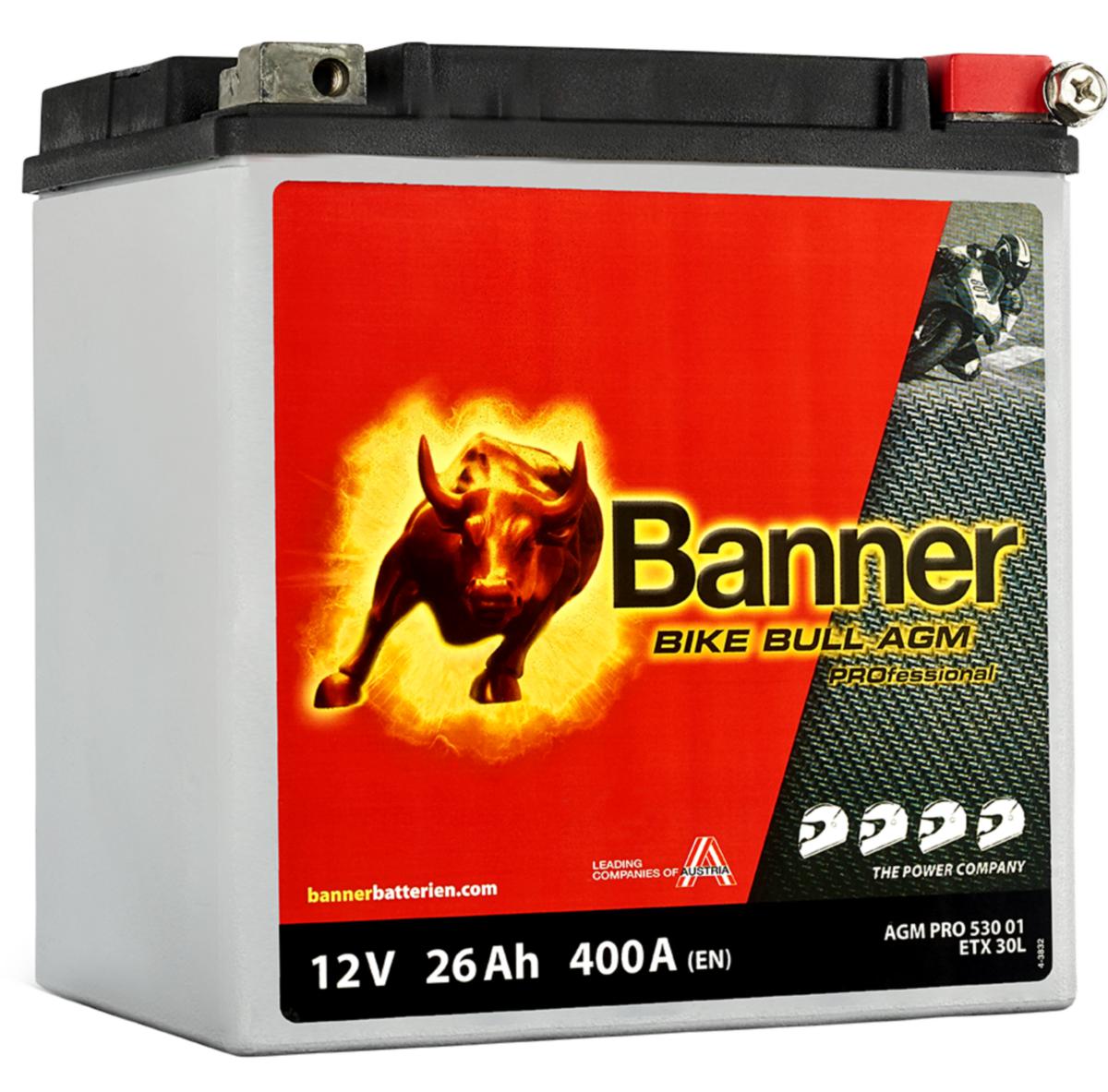 The Banner Bike Bull PRO AGM is a high-quality motorcycle battery in original part quality, used by brands such as Harley Davidson and BMW. It is specially designed for vehicles with a lot of equipment that require high starting current. Perfect for watercraft, winch ATVs and snowmobiles thanks to its cold stability. The battery is both roll-over and leak-proof and offers exceptional vibration resistance and strong starting power. It is maintenance free and only needs periodic charging.