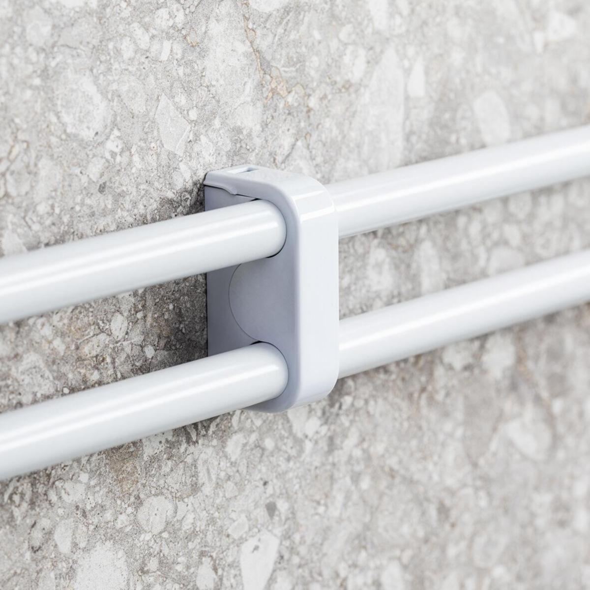 Plastic pipe clamp intended for two copper pipes with dimensions Ø12/15/16 mm. Remove the inserts when installing Ø15/16 mm pipes. Wet room sealing included.