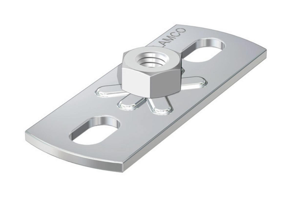In electro-galvanised version with connection for threaded rod. With 80x30 mm fixing plate. Can be used in combination with rubber-coated and vibration-damping clamps.