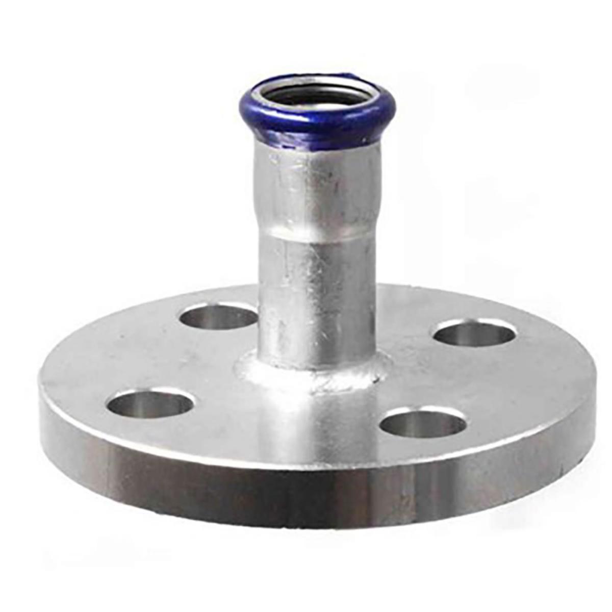 Flange transition with sleeve in stainless steel 316L, with leakage indicator (LBP) in unpressed condition, O-ring in EPDM not resistant to oils and mineral greases, pressed with M-jaws.