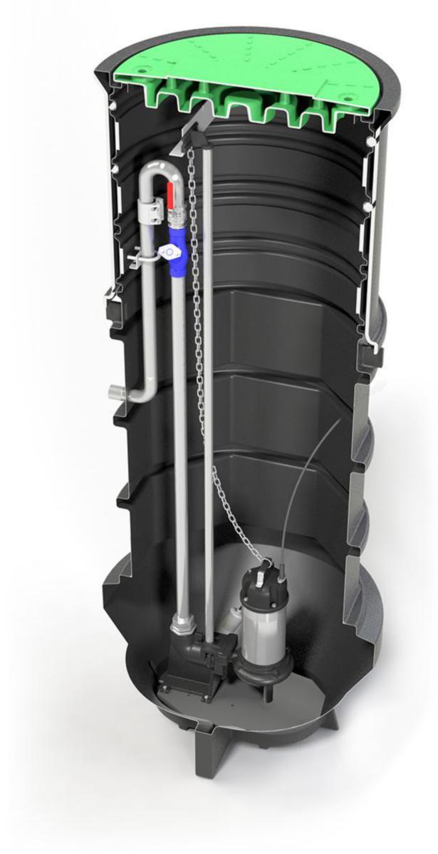 Complete pumping station PS900-1 incl. 3-phase cutting sewage pump.