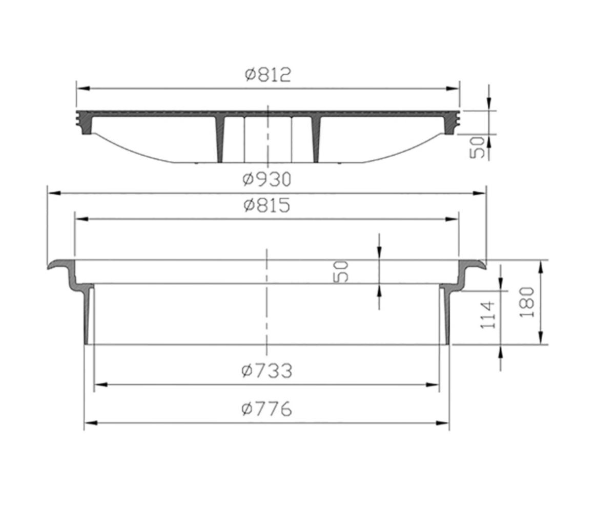 Floating district heating cover, with lid for descending well with opening 800, UP-gasket NBR, marked FV, hardened iron.