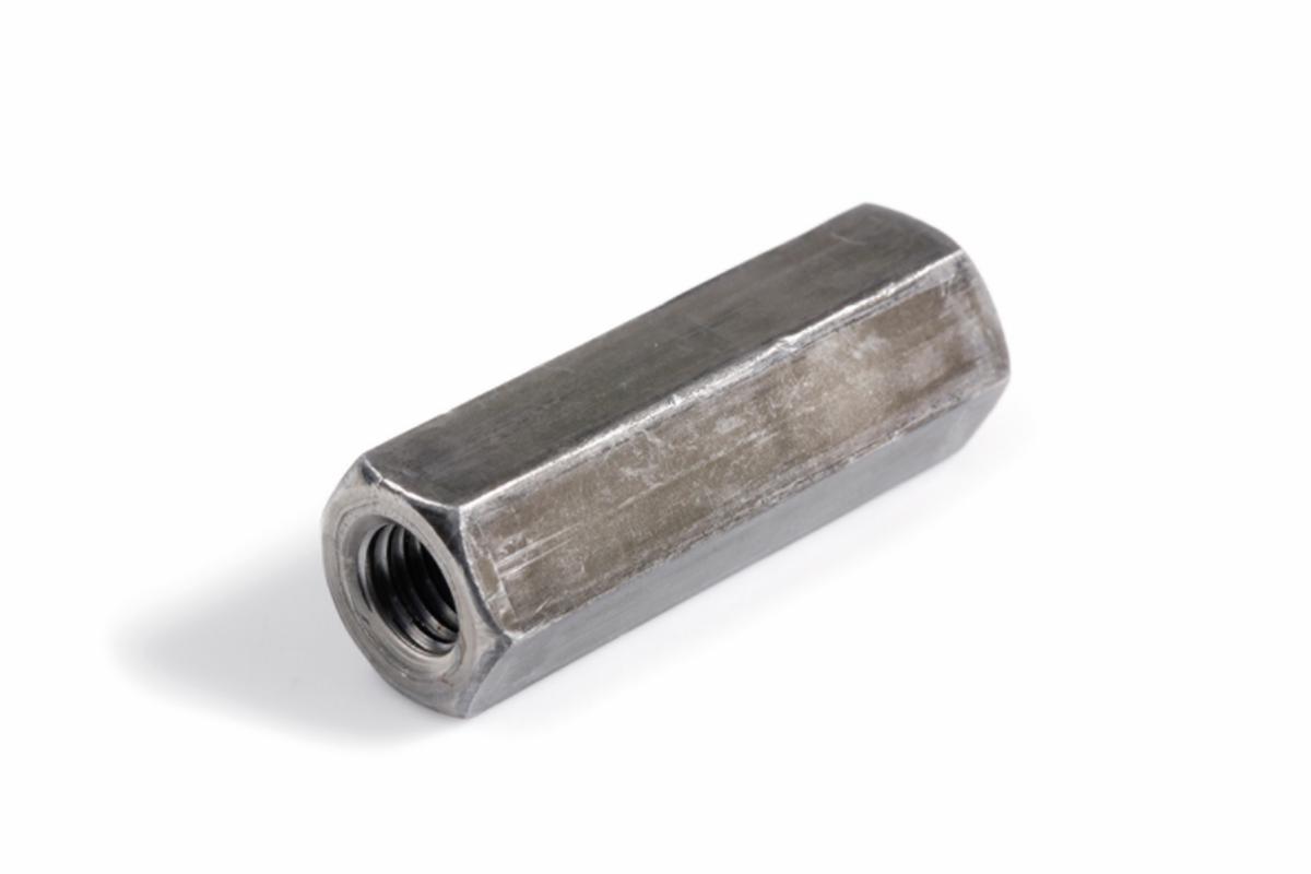 M-thread. Splice nut with hexagon. Steel Class 6 untreated.