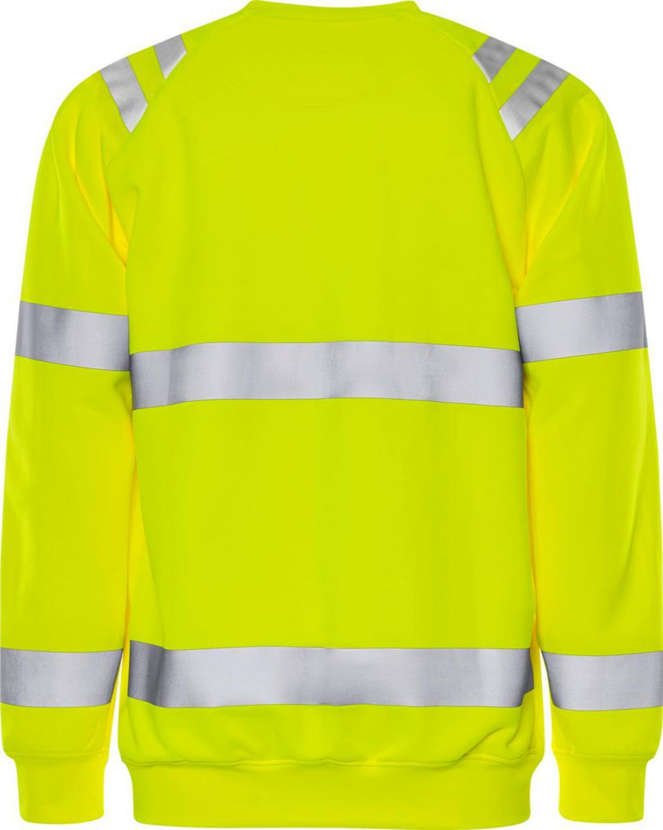 High-visibility sweater made from soft recycled material. Classic crew neck sweatshirt with stretch reflective strips. Concept: Trofta. Recycled material / Stretch reflective strips / Ribbed collar and cuffs at sleeve ends and hem / Raglan sleeves / Inserts in the sides and sleeves without reflective strips, for even better freedom of movement / Approved according to EN ISO 20471 class 3 / OEKO-TEX® certified. Material: 100% recycled polyester. 275 g/m². Standard: EN ISO 20471 – High visibility.