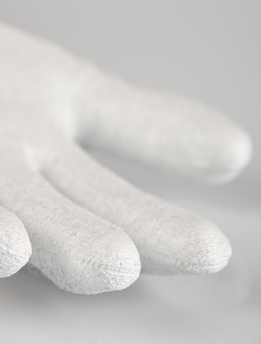 ESD gloves in nylon and carbon-fibre yarn for dissipation of static electricity. The inner glove is dipped in durable polyurethane. Sleek.
