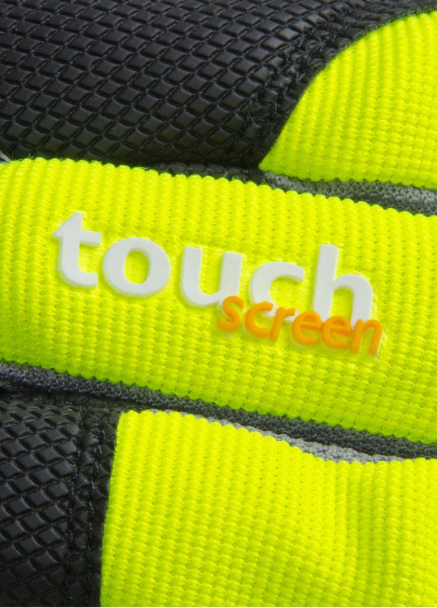 Wear-resistant glove with extremely good grip. Touch screen function so you can use tablet/mobile devices without removing the glove. For construction/plant and handiwork.