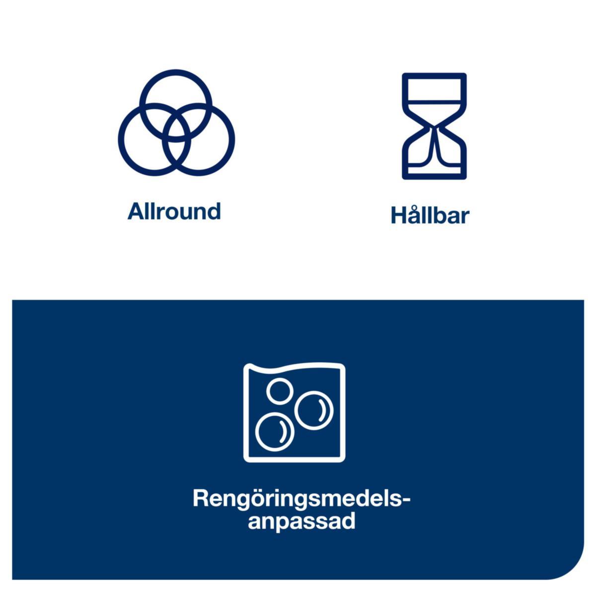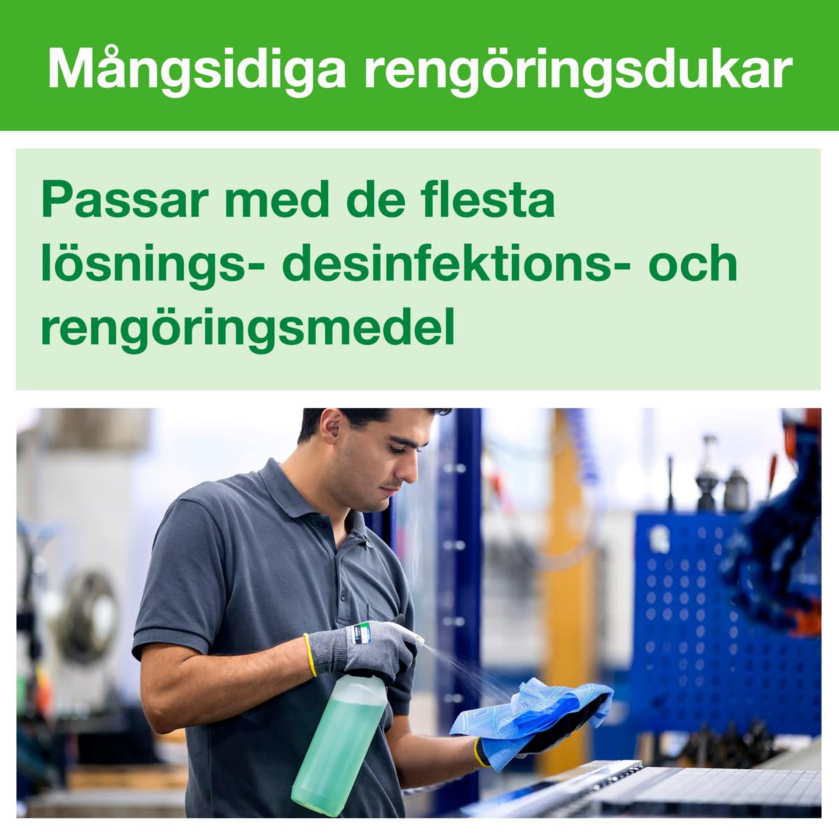 A durable, cleaning cloth, which can be rinsed out and used several times without breaking. Perfect as cleaning cloth. It is available in four colours for preventing contamination. Works well with solvent, approved for contact with food.