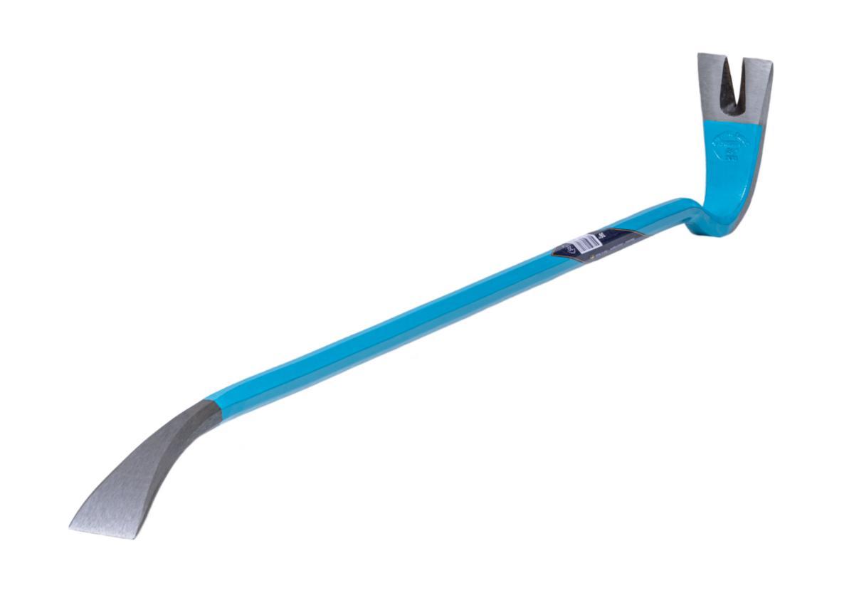 The crowbar has an octagonal shaft that provides a better grip and a nail puller forged at a 90° angle, allowing access even in small spaces. The distinct V-shape of the nail puller fits all shapes and sizes. The contact surfaces at both ends of the crowbar are wide, finely ground, and polished.