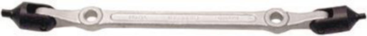 Chromium vanadium steel. Dual with internal varying wrench widths. Chrome-plated.