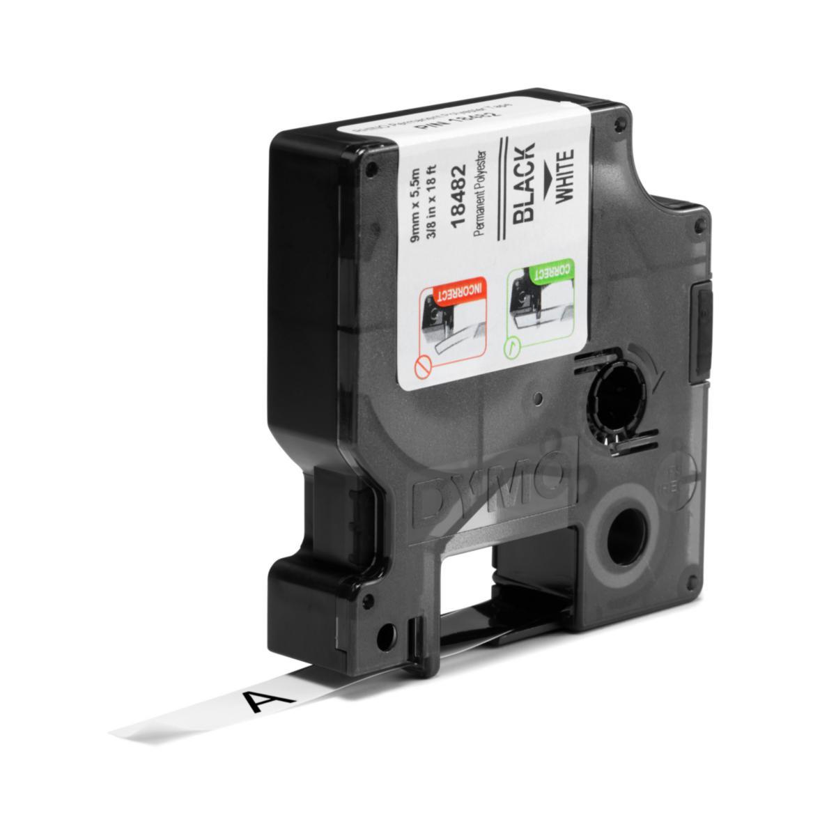 TAPE DYMO IND 9 MM X 5,5M PERM. POLYESTER BLACK ON WHITE