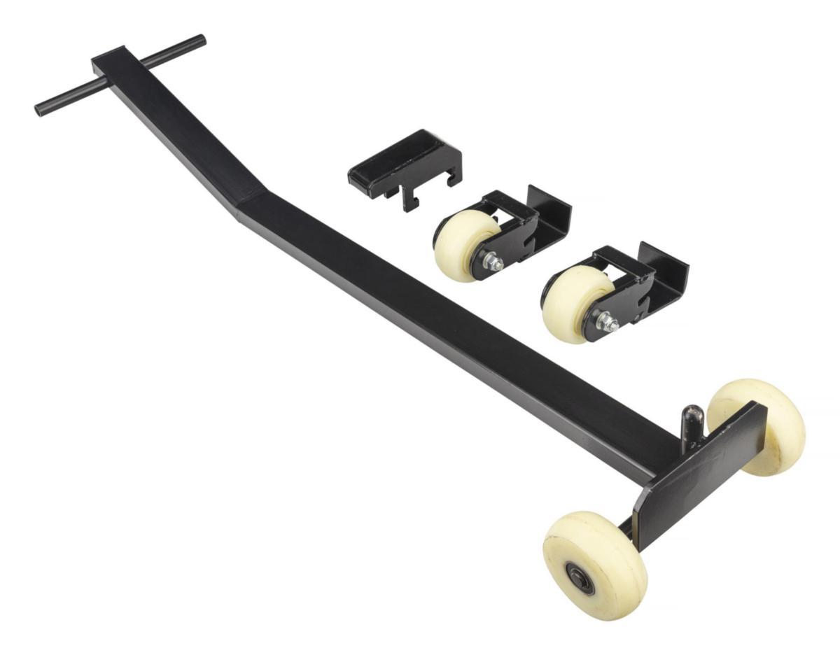 Wheel set for service lift 35520933. Sturdy ball-bearing wheels that are easily mounted when the lift is raised about 10 cm from the floor. The front wheel pair also functions as a lever, making the lift easy to move.