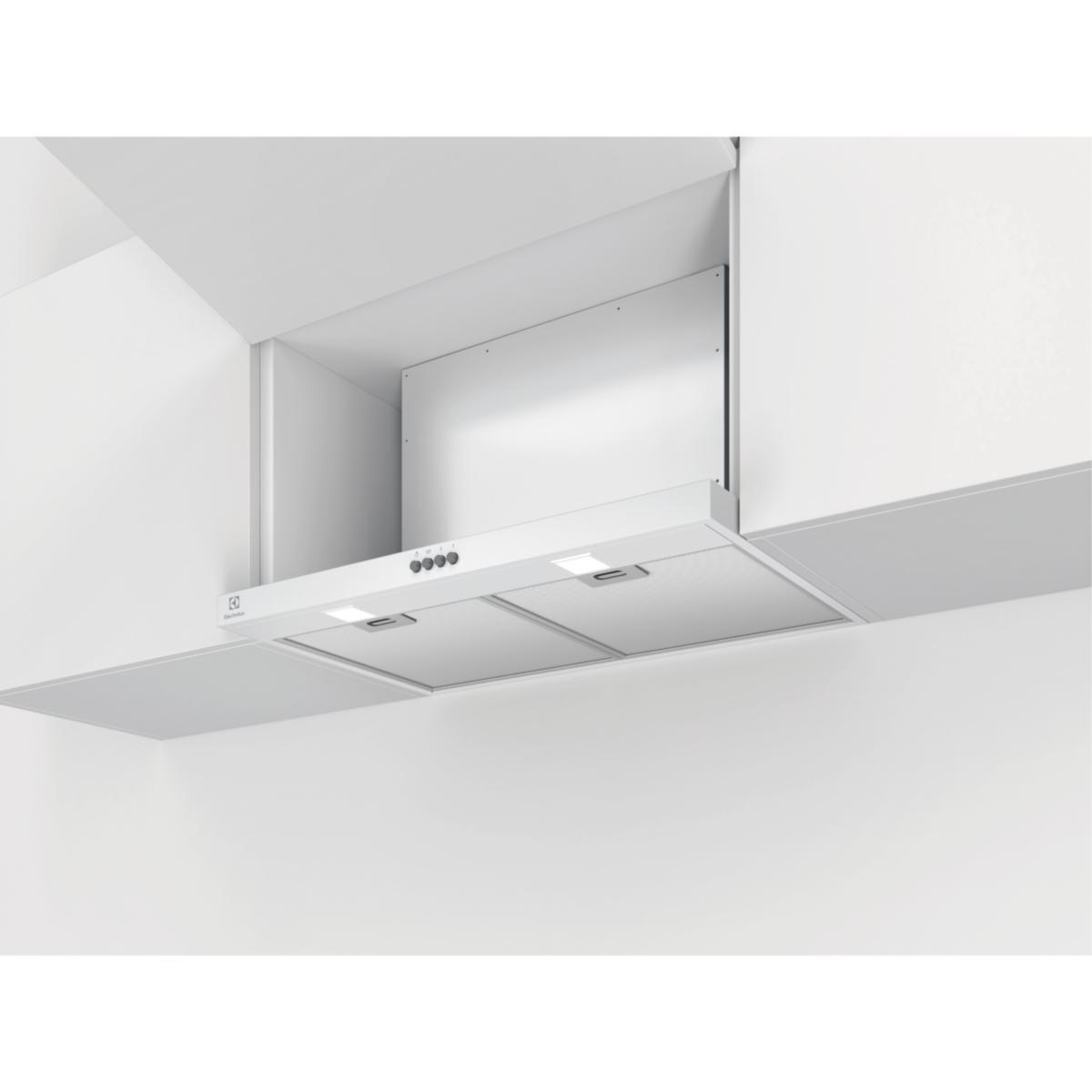 Integrated fan with a powerful two speed motor. Energy-efficient LED lights for good visibility in the kitchen. The grease filter can either be replaced or washed.