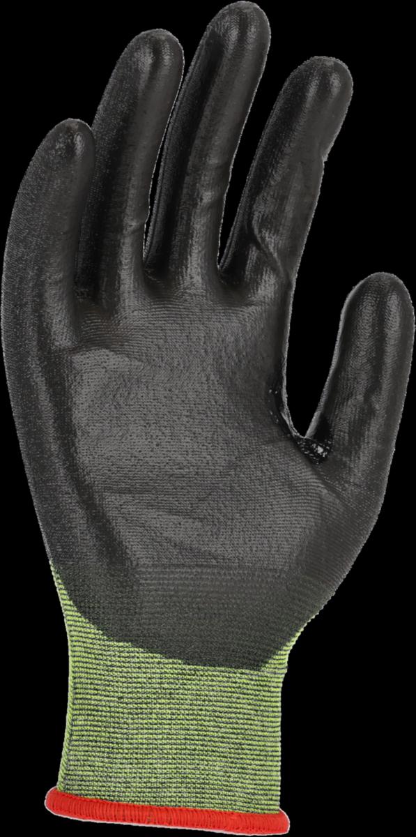 Supertunn skärskyddshandske, Cut F med 21 gg stickning. Perfekt för precisionsarbete med små och vassa föremål. Tillverkad enligt CRF®Omni-teknologin med HPPE. Handsken har touchfunktion, doppad i PU för bra grepp i torra/fuktiga och lätt oljiga miljöer. Förstärkning mellan tumme och pekfinger. Standard: Kat 2: EN ISO 21420:2020, EN388:2016+A1:2018 2X42F.