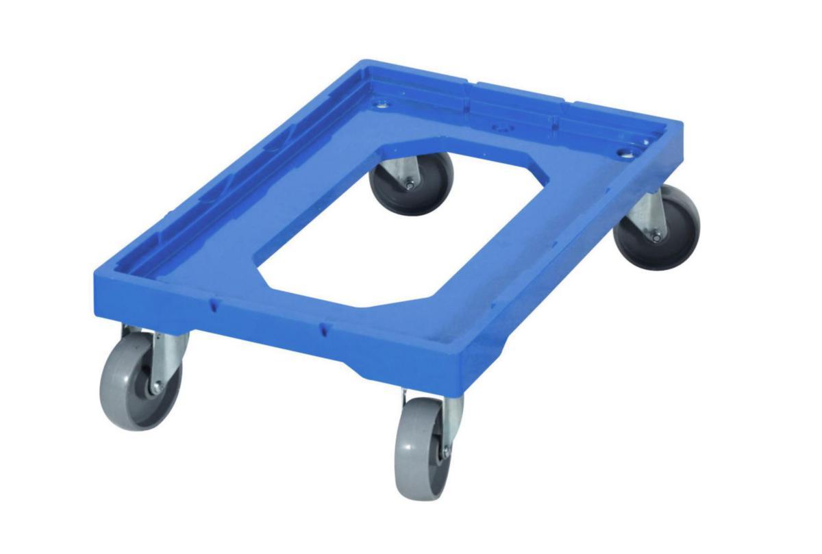 Vagn passande transportlådor 400x600mm. Fyra svängbara hjul.