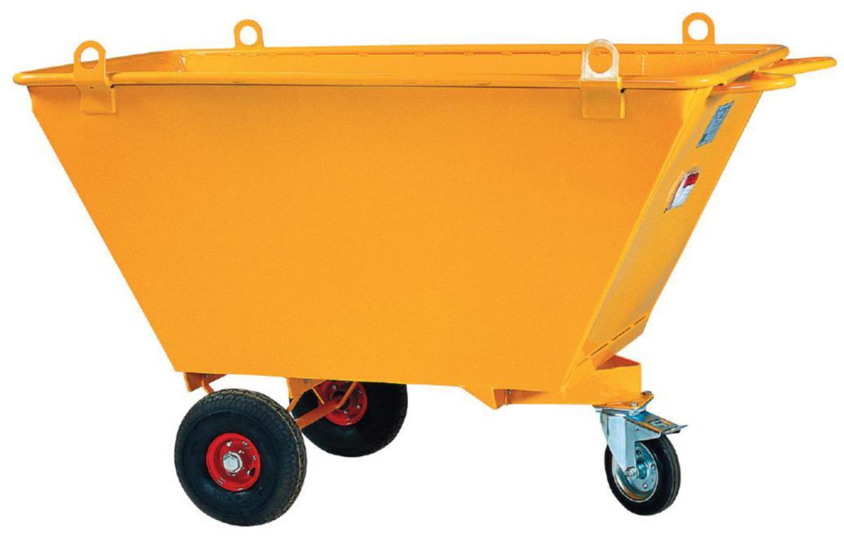 Med lyftöron. Volym 300 l. Pulverlackerad. Bromsat länkhjul. Godkänt enligt EU:s maskindirektiv 89/392/EEC med tillägg.