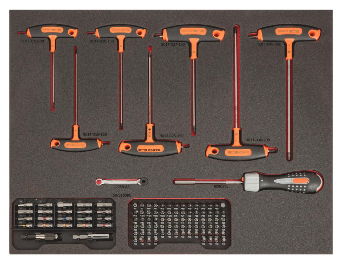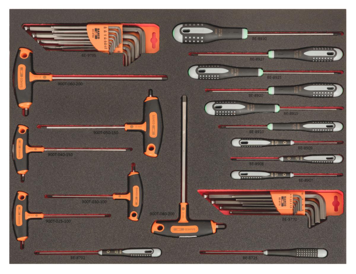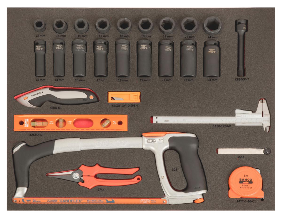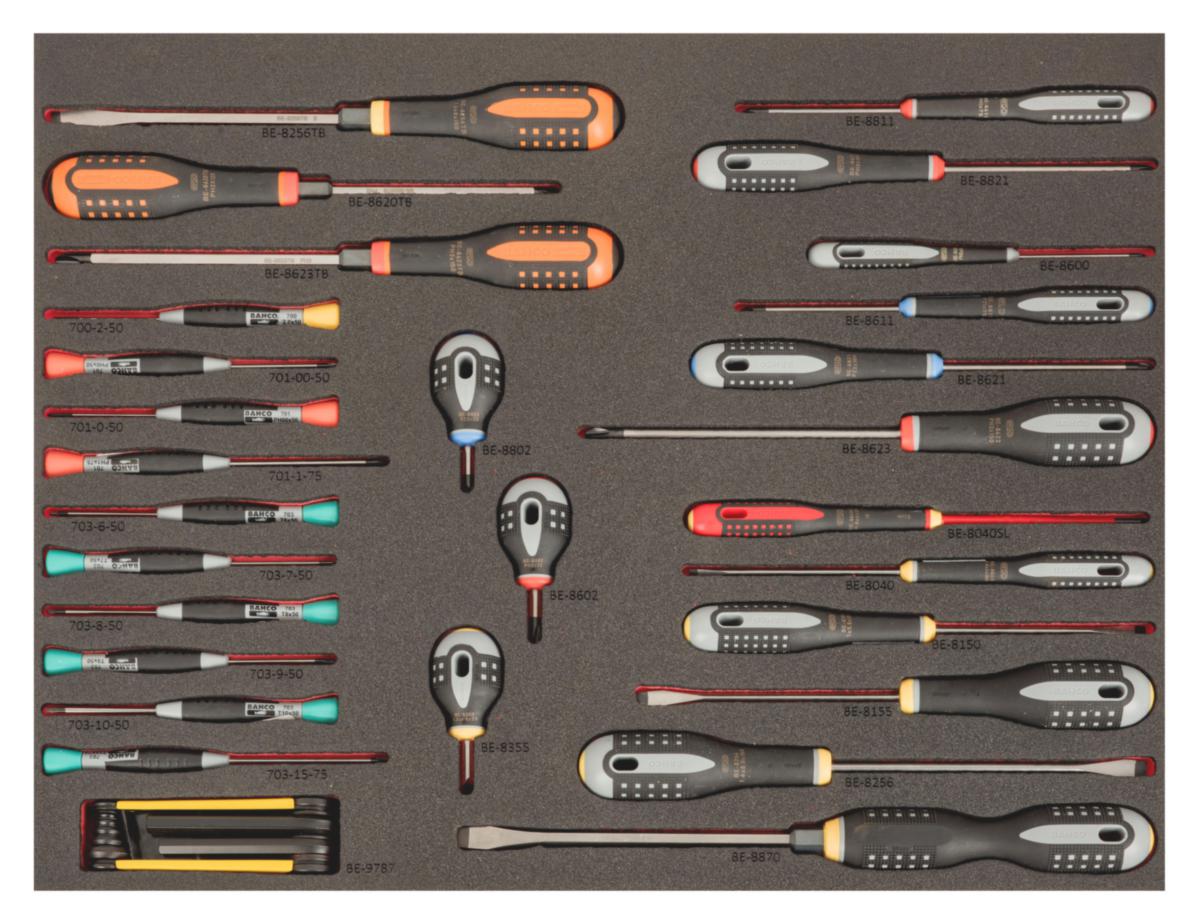 Verktygsvagn E77 med 9 lådor, överskåp E87 samt ett verktygssortiment i skumplastinlägg. Dubbelväggig stålstomme. DAAT-systemet säkerställer att endast en låda kan öppnas åt gången och undviker att vagnen tippar. Fullt öppningsbara lådor med separata stötdämpare i hörnen. Lådspärrsystemet undviker att lådorna öppnas av misstag. Hjul varav två med broms säkrar vagnen står stadigt och förhindrar rörelse i alla riktningar. Oöverträffade anpassningsmöjligheter tack vare perforerade sidopaneler och utbytbar bänkskiva. Xpand-tillbehörsmodulsystem ger användaren möjlighet att konfigurera den perfekta arbetsstationen. Låssystem med elektronisk åtkomstkontroll tillgänglig. Reptålig pulverlackering på utsidan och insidan garanterar ett bra skydd mot rost. Dubbelväggig stomme säkerställer att lådorna kan öppnas även om ytterväggen skadats. Byt ut den ordinarie bänkskivan i kompositmaterial mot en i rostfritt stål, MDF eller kastanjeträ för olika typer av jobb. Innehåll: FF1ASET-XLARGE verktygssortiment med 556 delar. Med 9 lådor + överskåp med 4 lådor. Innehåller totalt 556 verktyg. Särskilt utvecklad för att klara stora påfrestningar. Anpassa den genom att lägga till olika tillbehör. Innehåller hylsor och tillbehör i 1/4", 3/8", 1/2" och 3/4", korta och långa krafthylsor, fasta nycklar 8 – 34 mm, spärrkombinycklar, ledhylsnycklar 8 – 19 mm, tänger, polygrip, rörtång, skiftnycklar, skruvmejslar för spår-, Phillips-, Pozidriv- och Torx-skruv, insexmejslar, bits, filar, hammare, bågfil, huggmejsel, dornar, mätverktyg med mera.