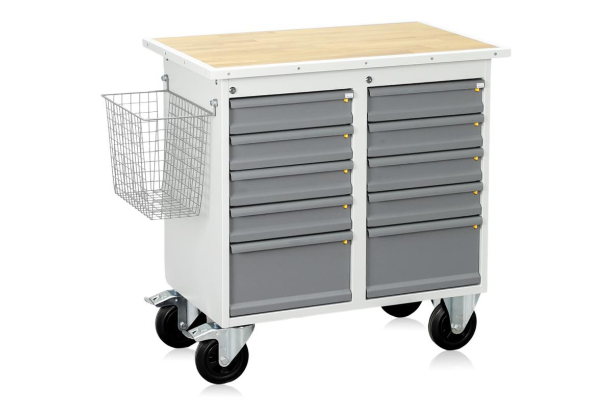 Trådkorg till mobil arbetsbänk av lackerad tråd. Kan fästas på båda sidor om vagnen i befintliga handtagsinfästningar.