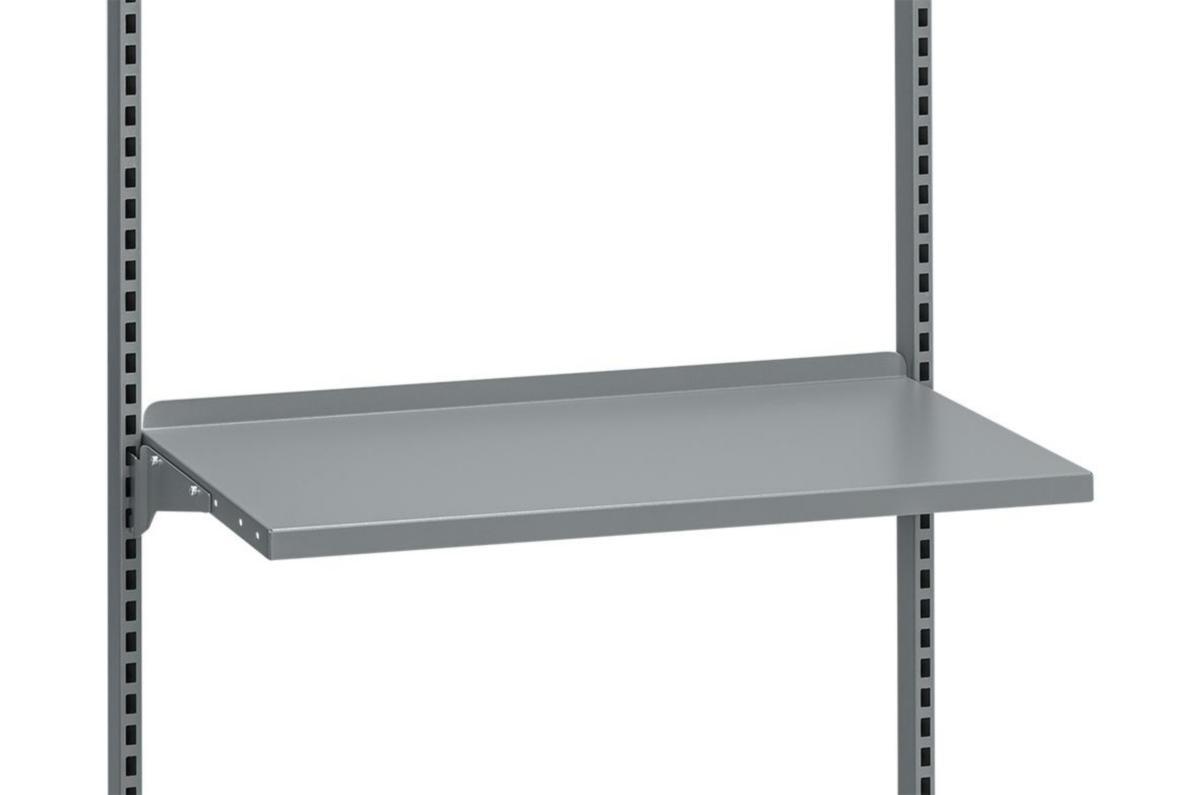 Hyllplan med raskant för verktyg och plastbackar. Inkluderar 2 stycken konsoler. Monteras på perforerad pelare, rak eller vinklad.