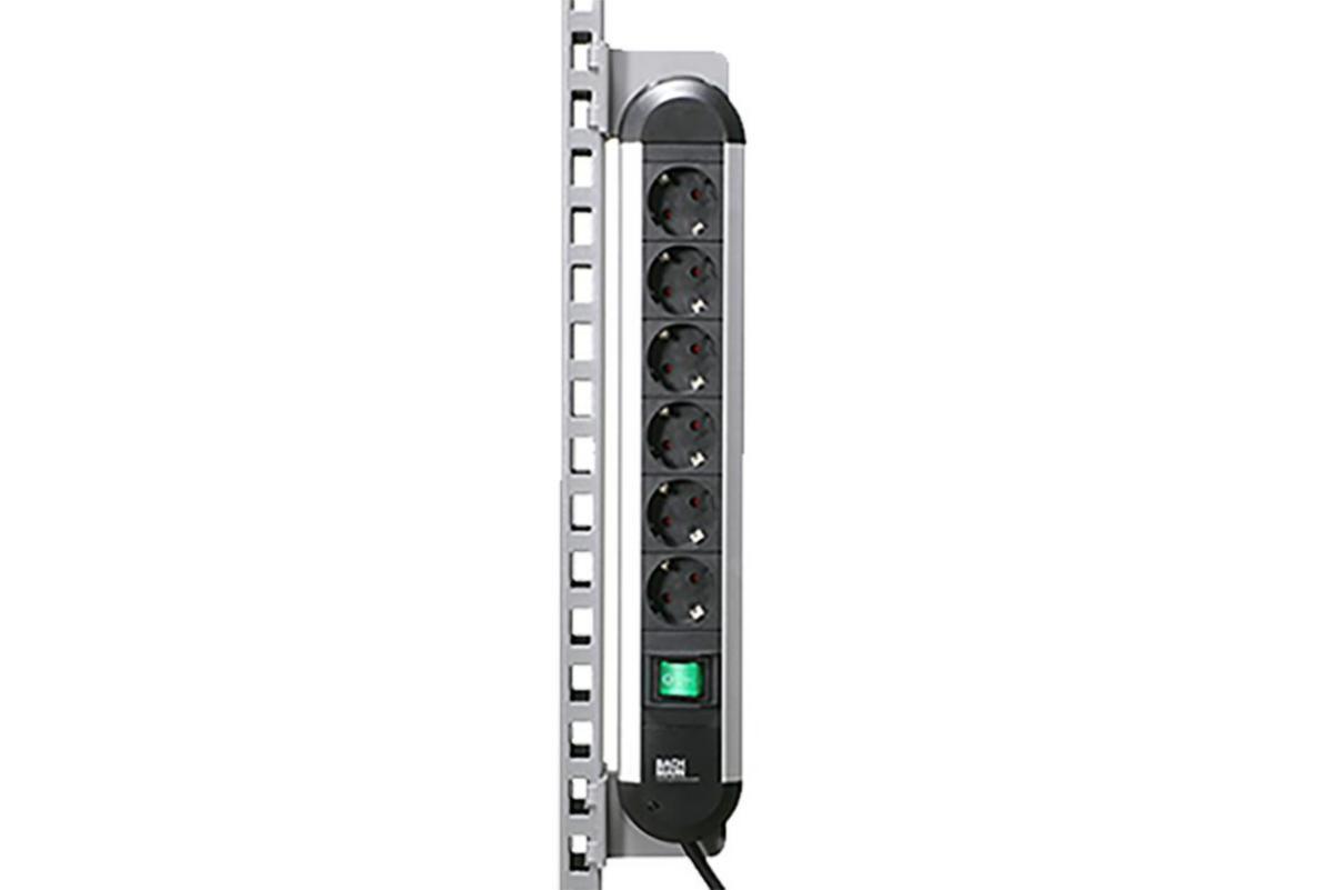Komplett energipanel tillverkad i aluminiumprofil inklusive fästen för perforerad pelare. 6 uttag medbelyst strömbrytare. Levereras med en 3m anslutningskabel. Märkspänning: 16 A 250 V AC.