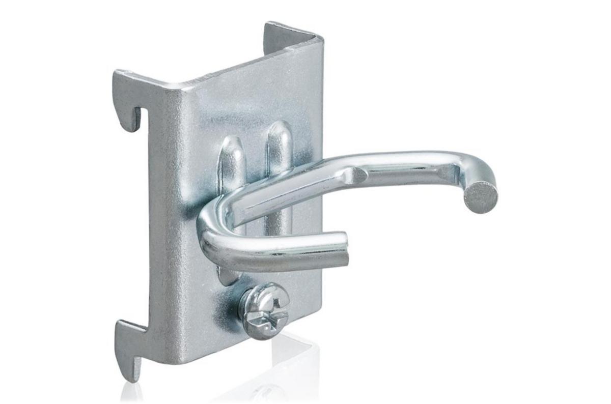 Bygelkrok till perforerad panelför verktygsupphängning. Avsedda för håldimension 9x9 mm, hålavstånd c/c 38 mm. Säljes i 5-pack.
