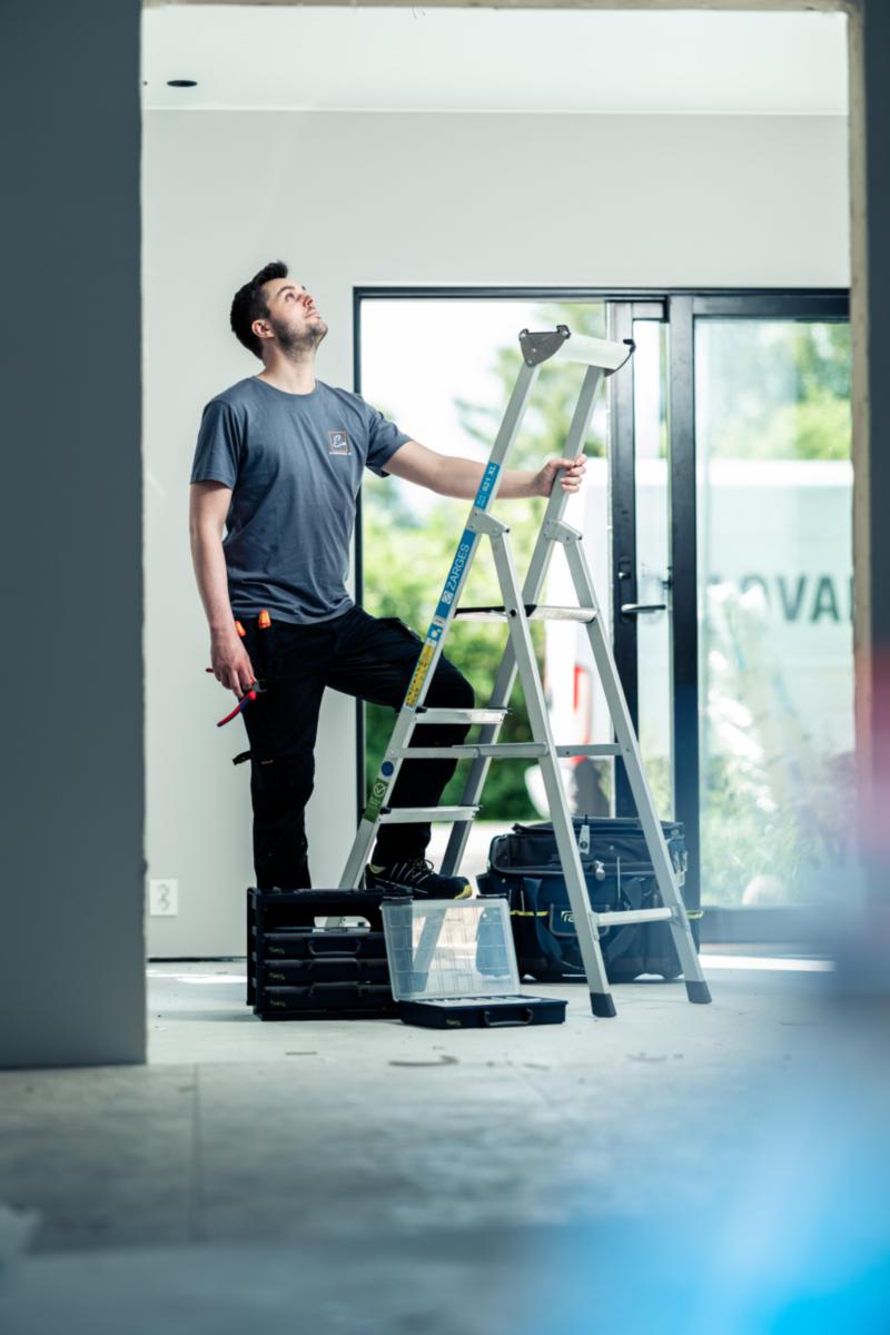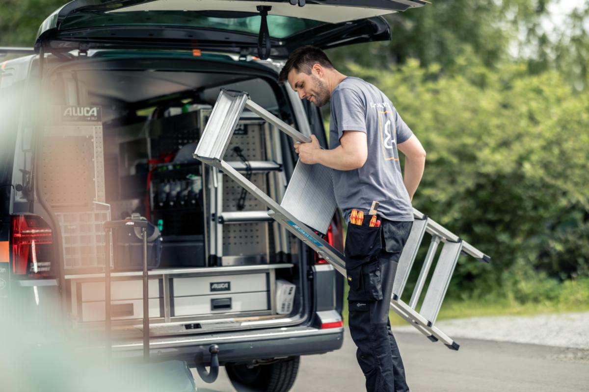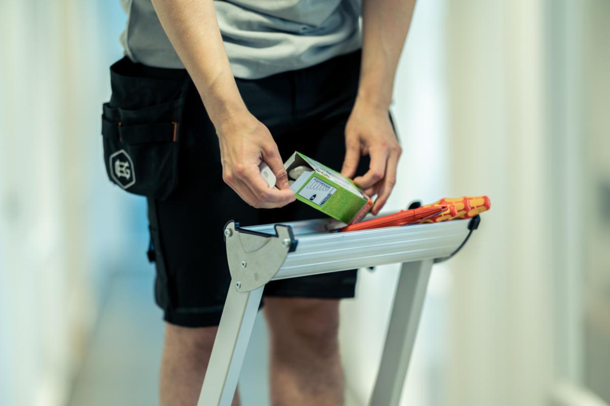 Lätt och stabil trappstege med stor säkerhetsplattform och eloxerade stegsidor (svärtar inte). Dubbla knäleder för optimal stabilitet. Rymlig förvaringshylla av aluminium. 2- 5-stegsmodellerna är godkända enligt Bra Arbetsmiljöval, nivå 2.
