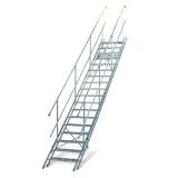 Räcke i stål som är anpassat till byggtrappan. Kan monteras på båda sidor.